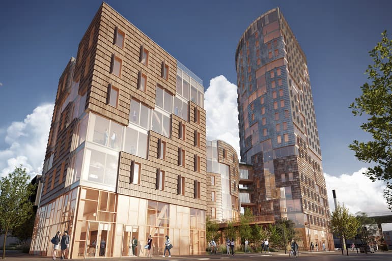 Vindmøllevingerne skal dog bestå en brandtest, før det endeligt besluttes, om de kan anvendes, understreger han. Netop brandsikkerhed kan være en udfordring for et 78 meter højt træhus med 20 etager.