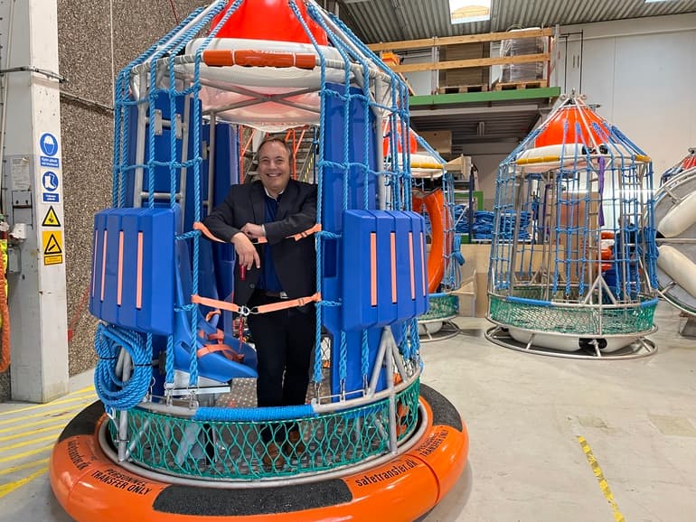 - Den her er mellem 20 og 30 år gammel, og så kommer den til service, fortæller Carsten Larsen om en Safe Transfer Basket, der stadig er mange års levetid i.